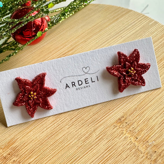 “Betty” Gold, Red, Green Glitter Ornament w/Gold Played Hook Dangle Earrings
