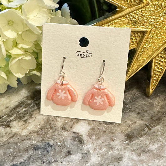 Handmade Polymer Clay Pink Ugly Sweater Silver Hook Dangle Earrings