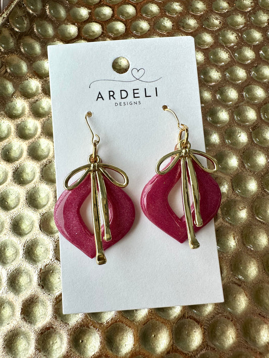 “Betty” Berry Pearl Ornament w/Gold Hook and Gold Bow Charm Dangle Earrings