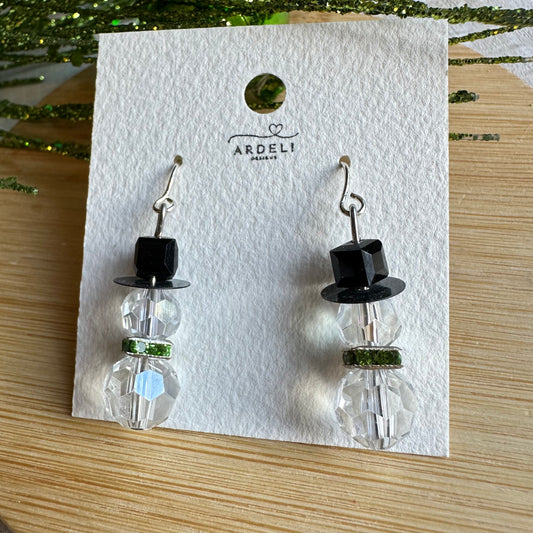 Crystal Beaded Snowman Silver Hook Earring Dangles